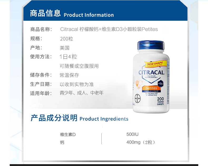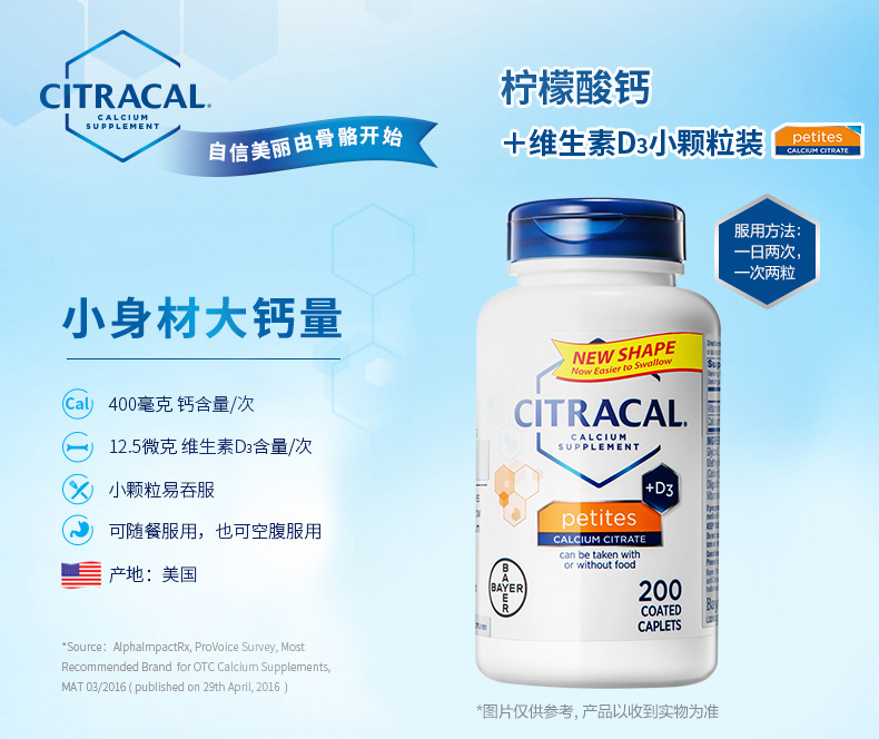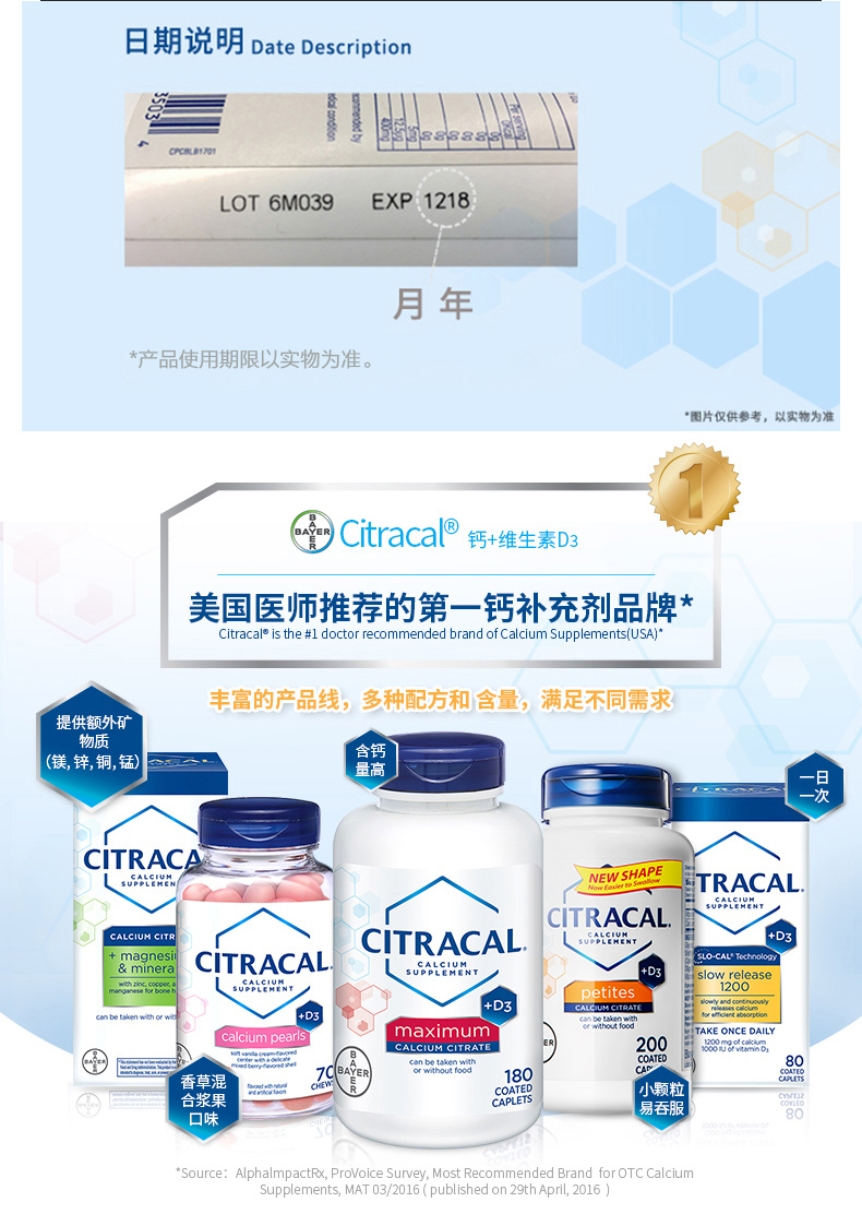 拜耳公司是德国知名的世界500强企业,在医药行业享有很高的声誉。Citracal是隶属于拜耳集团旗下的品牌,主打骨骼健康的钙类产品。