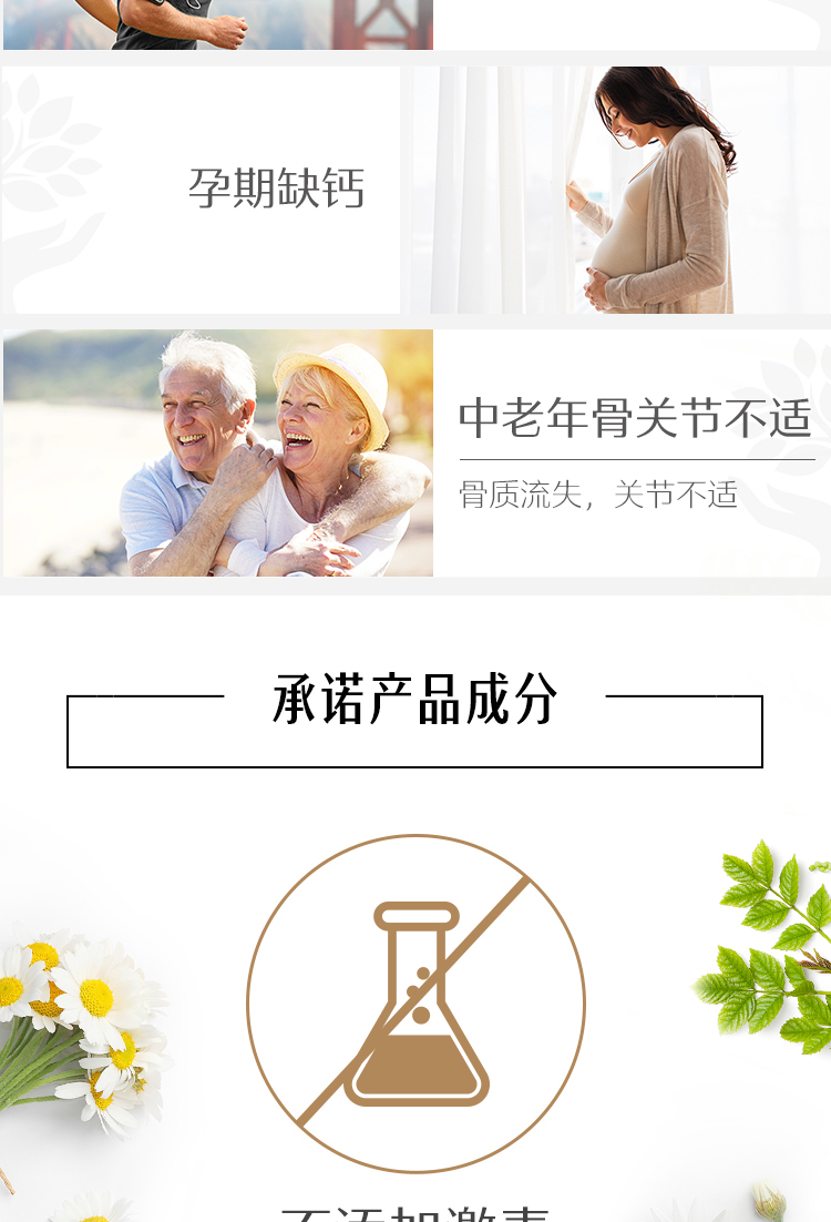 澳洲进口, 适合13岁以上人群服用,每天2-3片,随餐。可促进骨骼发育,预防骨质疏松,舒缓情绪,提高睡眠质量,缓解腰酸背痛和抽筋等症状;可预防和治疗高血压和心肌梗死。