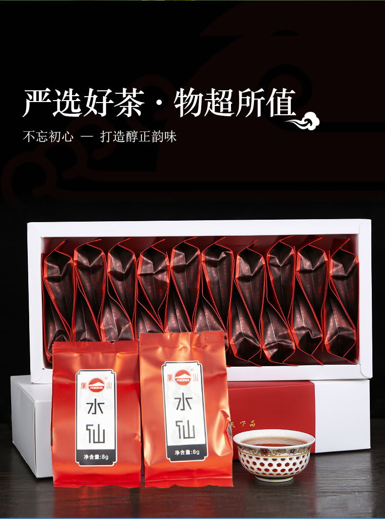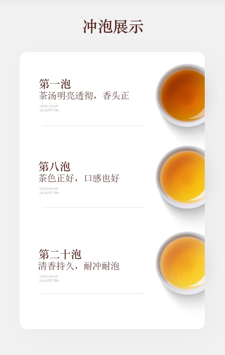 凤山武夷岩茶特级肉桂乌龙茶抽屉装168g,每小包8g,条索壮实,油润稍带宝色,茶香明显,冲泡口感上佳;汤色橙黄稍深,香气浓郁醇且润;叶底软亮,朱砂红边稍明显,耐泡有余香。