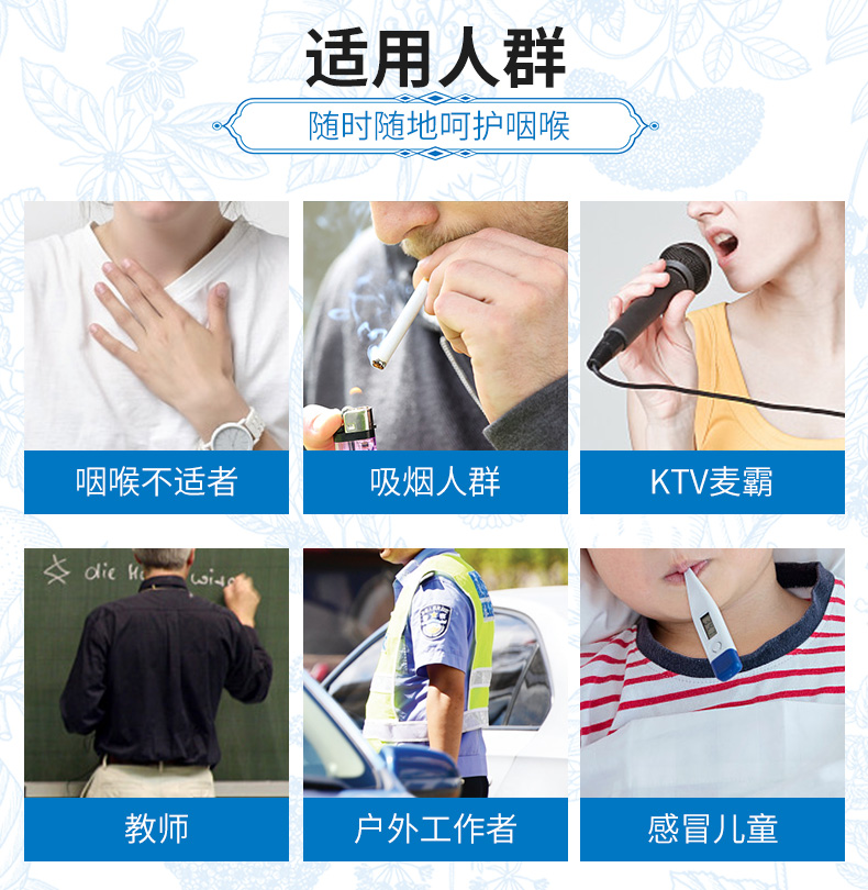 龙角散对于感冒引起的喉咙肿痛及吸烟过多导致的嗓子不适,都有显著缓和作用,适用于咽喉不适者、吸烟人群、感冒儿童、教师、户外工作者、KTV麦霸等。