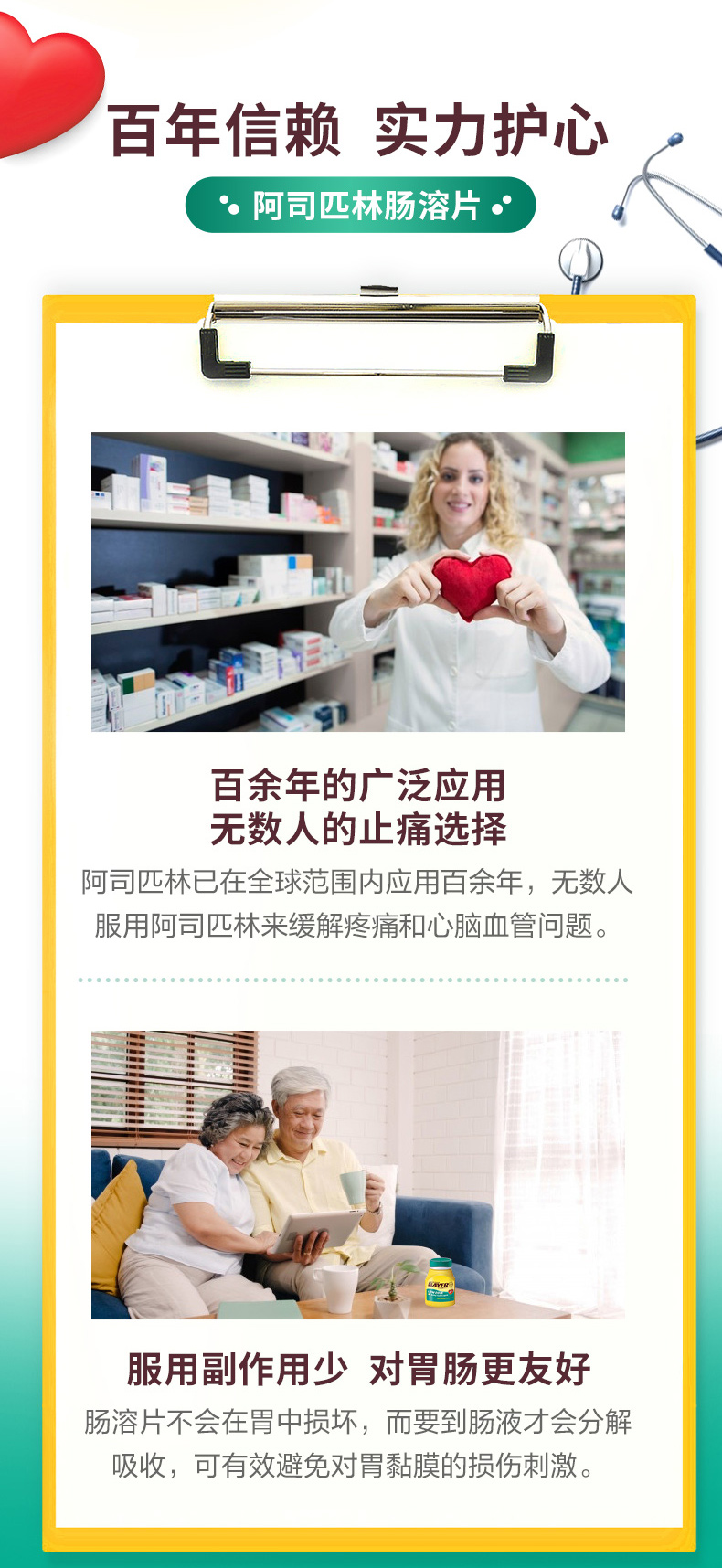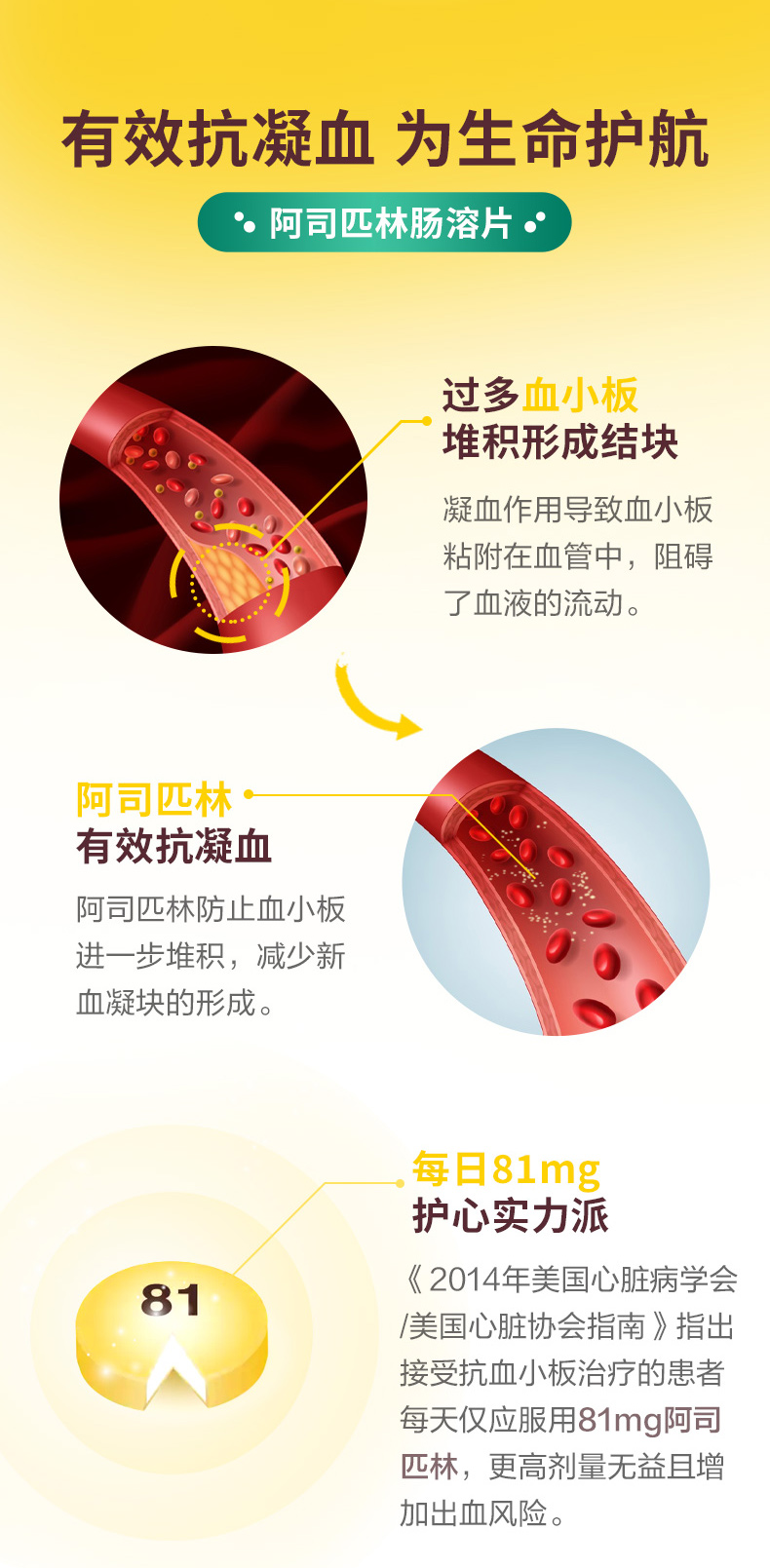 但要注意的是,虽然医生推荐心脑血管风险的人群坚持小剂量服用阿司匹林,但他终究还是药品,不是保健品,而且对肠胃有一定的刺激性,长期服用一定要咨询医生。