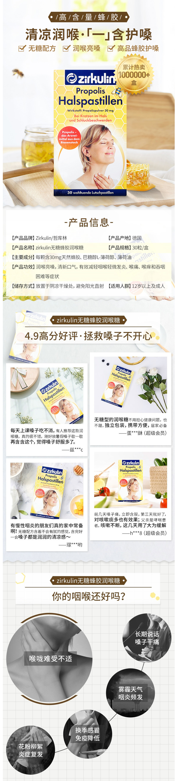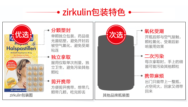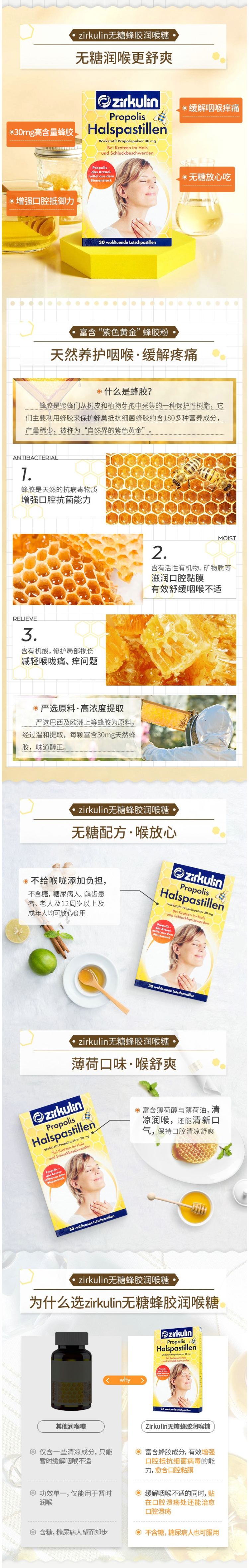 这款 Zirkulin 润喉糖含有丰富的蜂胶成分,可有效增强口腔抵抗细菌病毒的能力,愈合口腔黏膜,缓解咽喉不适的同时,贴在口腔溃疡处还能治愈空腔溃疡。