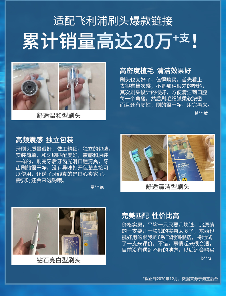杜邦毛刷 提示型刷头 卡入式设计。标准常规型8支(第1款)此价,送牙线棒+牙刷支架+防尘盖,2W+评价,4.9分高评分,有评论说比原装的还密还软,清洁效果也不错,感兴趣的童鞋可以试试。