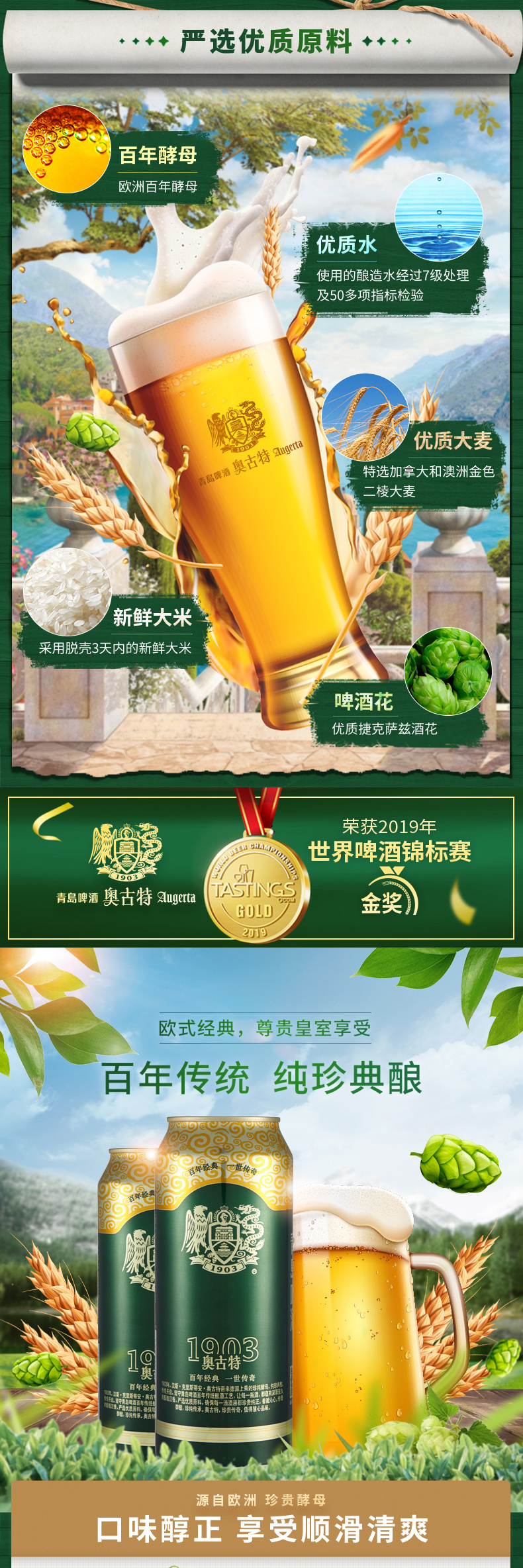 青岛奥古特是青岛啤酒界“高富帅”,代表了高品质中国啤酒,超市零售价13元/听,价格上就可见一斑。奥古特主打高麦芽度,苦味稍重,但入口香浓醇厚。酿制奥古特啤酒所用萨兹酒花素有“捷克黄金”称号,以及具有传奇色彩的皇室酵母。