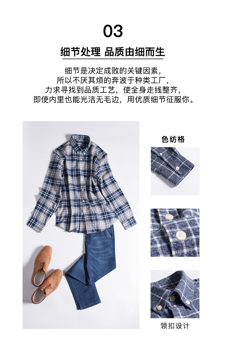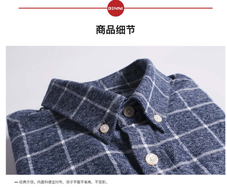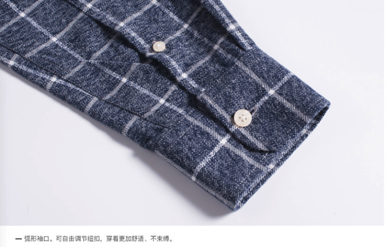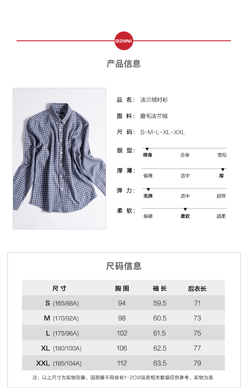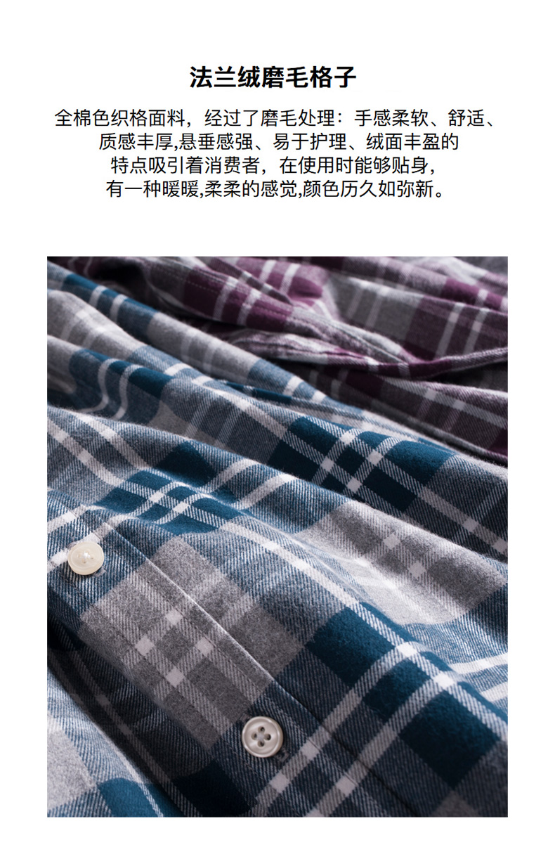 本米男士法兰绒磨毛衬衣,面料为100%纯棉材质,经典格纹样式,经过磨毛处理后,表面有一种暖暖、柔柔的绒毛感,质感丰厚,手感柔软舒适,刚上身不会有凉感,保暖性不错。