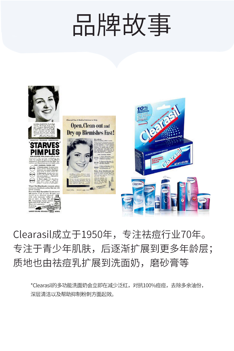 Clearasil品牌成立于1950年,2006年被利洁时集团收购,在30个国家均有销售。利洁时旗下有一个大家都熟知的品牌,那就是杜蕾斯,在2010年被利洁时收购。