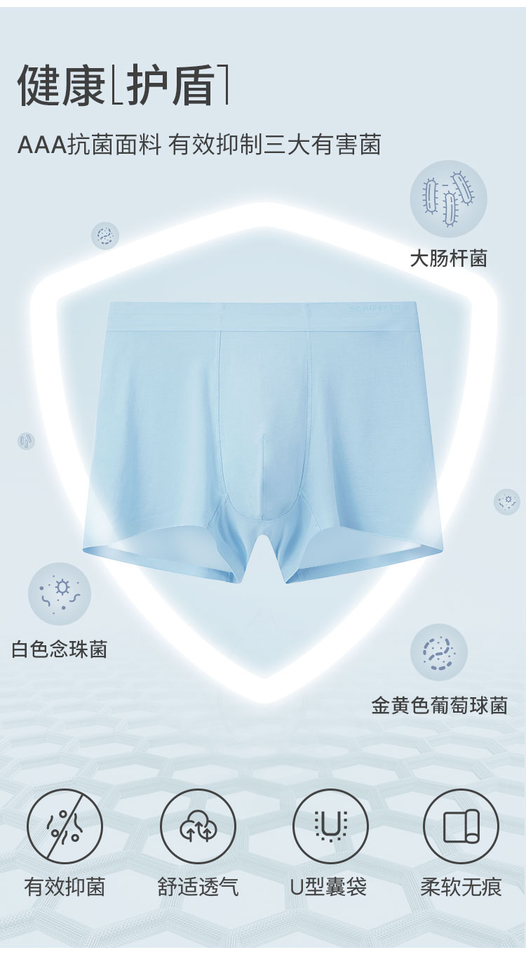 这款德国Schiesser 舒雅 男士锦纶冰丝抗菌平角内裤,规格:3条,采用53.7%锦纶+16.3%氨纶面料,手感顺滑,弹力十足,冰丝触感,轻薄贴合,散热速干,上身瞬感凉爽,速干面料,风筒吹干约10分钟,差旅更实用。经权威检测,3A级抗菌,双层前裆,立体囊袋剪裁,告别紧绷闷热,一片式剪裁,减少皮肤摩擦,无感穿着。炫彩镭射腰头,吸睛亮眼,活力十足。